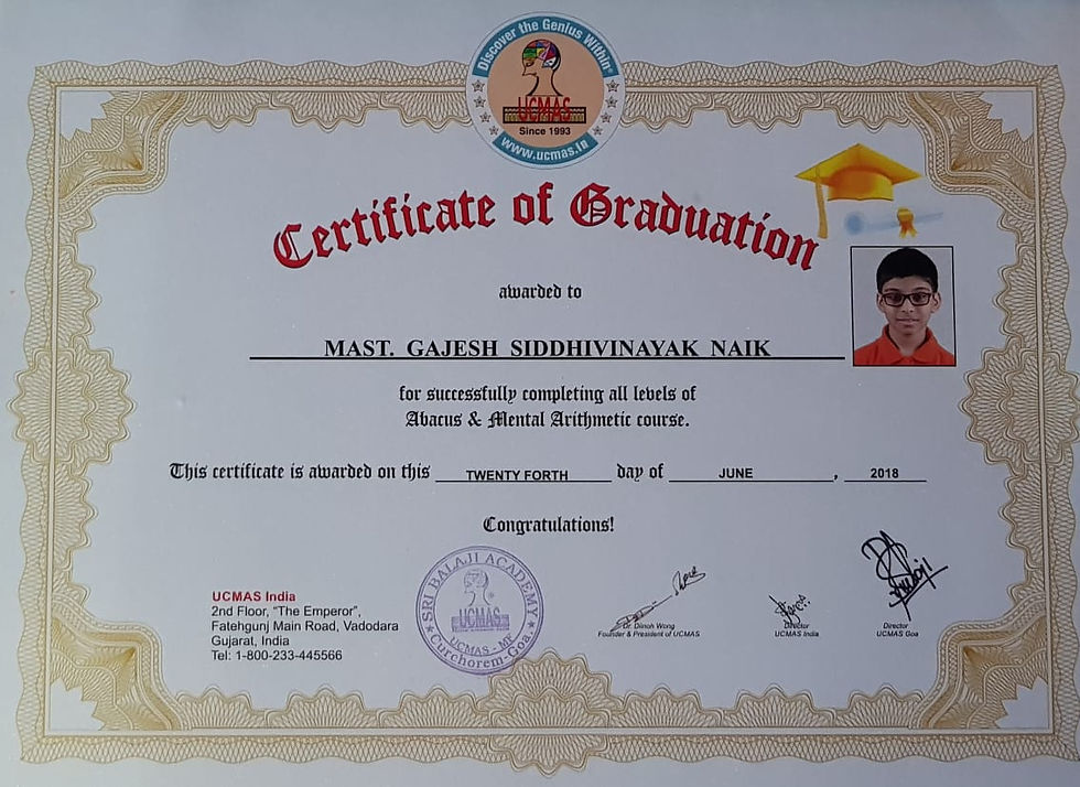 My heart leaped with joy while my name was being called out to receive #UCMAS Graduation certificate today at capacity packed Institute Menezes Braganza Hall at #Panaji. As I was wearing #Graduation gown at green room my memories #flashed back to the first day of level 1 under rightful training of Swati Naik. She instilled in me the foundation concepts in my mind and prepared me for National and International UCMAS #Contests. My #parents #supported me throughout the course spanning over 2 years. Today was day for my hard work being #paid.